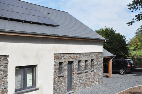Na openen van de poort is er, naast de woning, parking voor twee auto’s. Eén wagen kan onder de carport geplaatst worden.